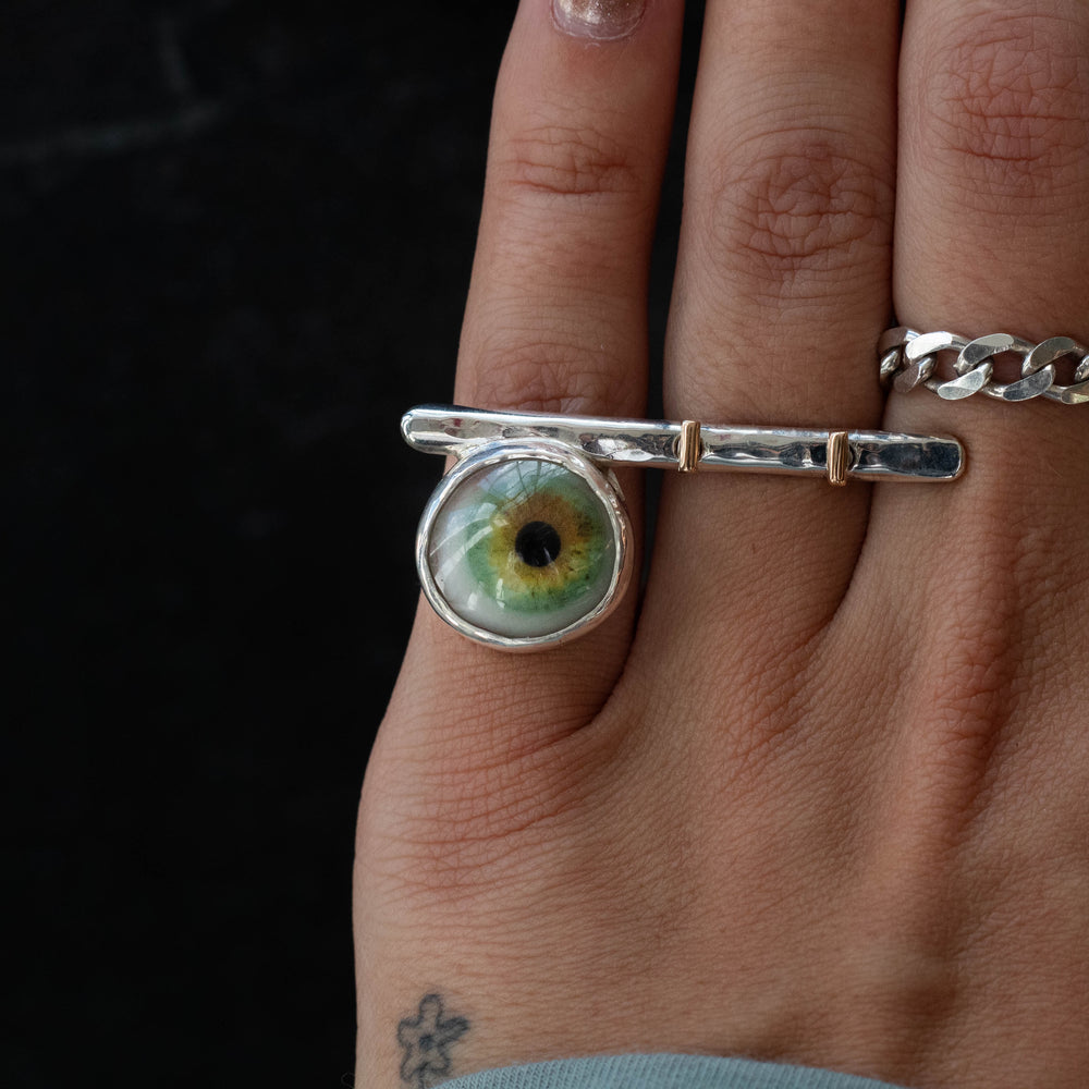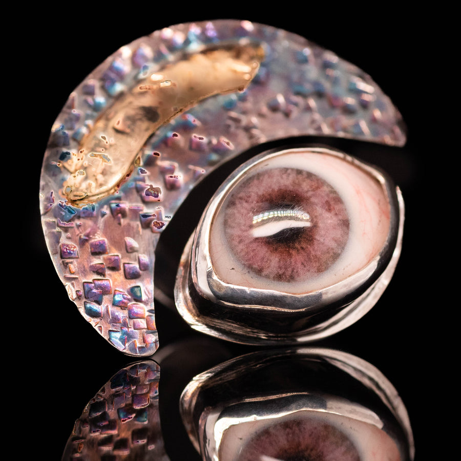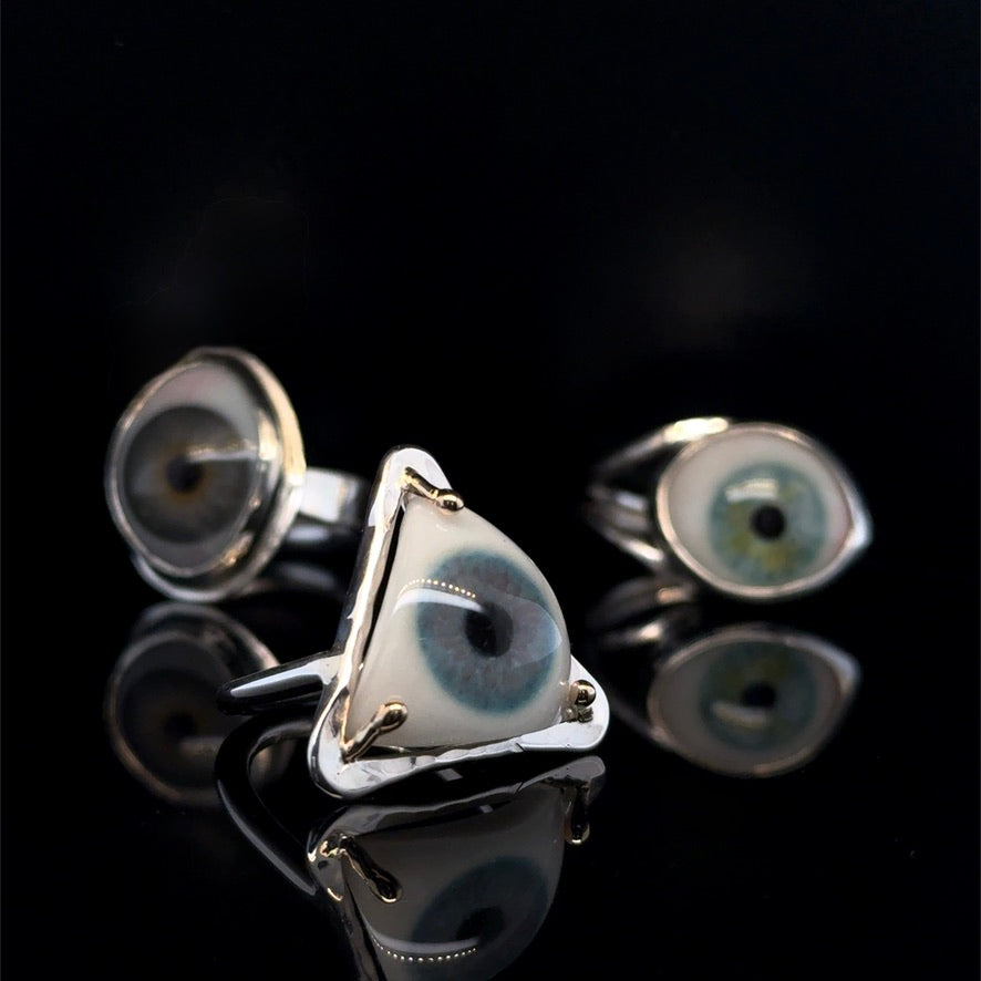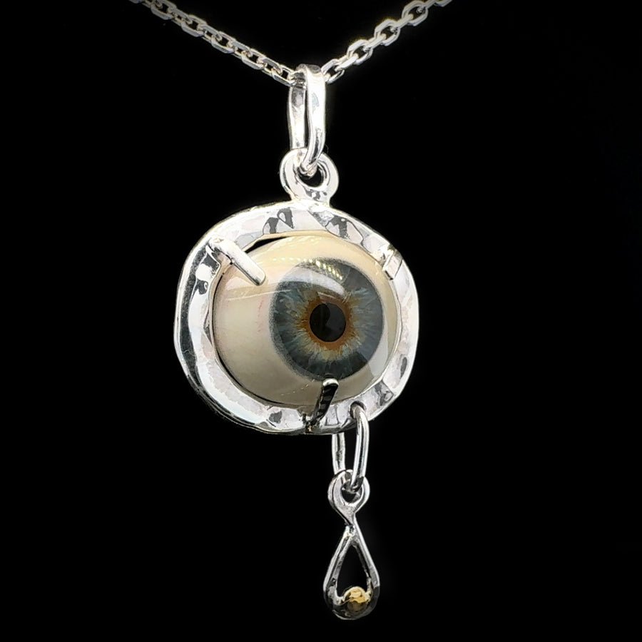Amanda Huang, a Brooklyn-based designer, crafts bespoke jewelry incorporating human prosthetic eyes, transforming them into one-of-a-kind wearable art. For Amanda, these pieces go beyond jewelry—they serve as comfort objects, memorials, and personal tokens. Whether symbolizing a loved one, a cherished memory, a lover’s gaze, a child, or parental guidance, each eye tells a unique story.