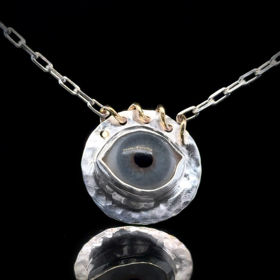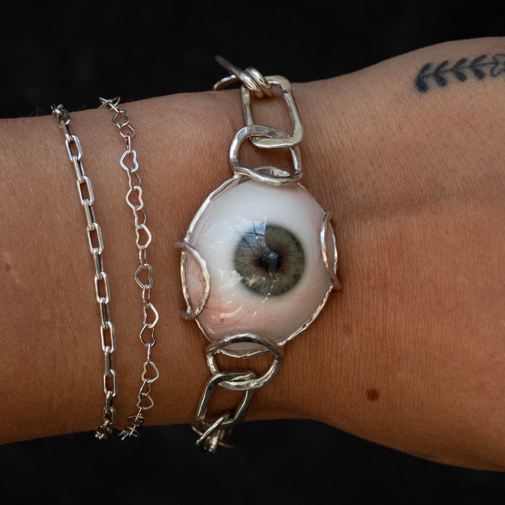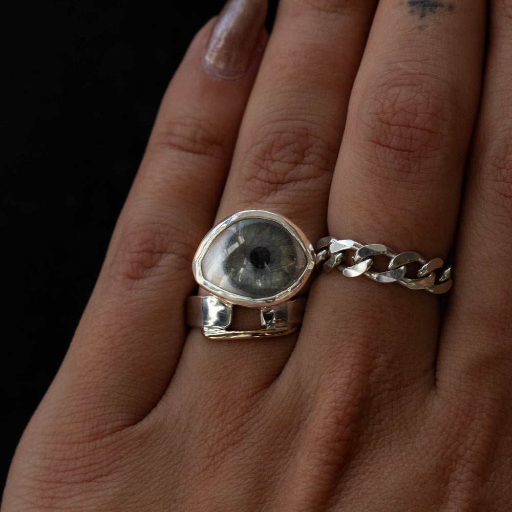 Amanda Huang, a Brooklyn-based designer, crafts bespoke jewelry incorporating human prosthetic eyes, transforming them into one-of-a-kind wearable art. For Amanda, these pieces go beyond jewelry—they serve as comfort objects, memorials, and personal tokens. Whether symbolizing a loved one, a cherished memory, a lover’s gaze, a child, or parental guidance, each eye tells a unique story.